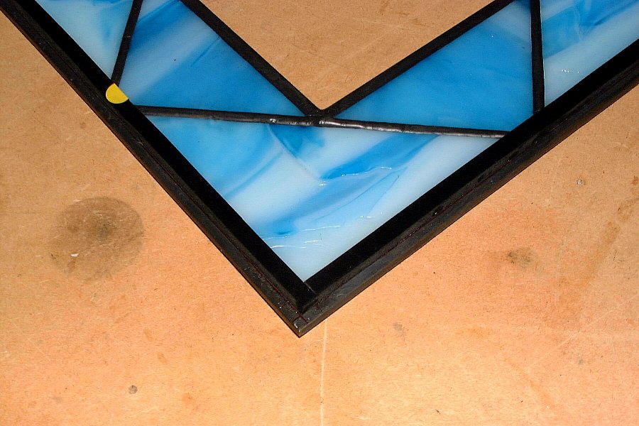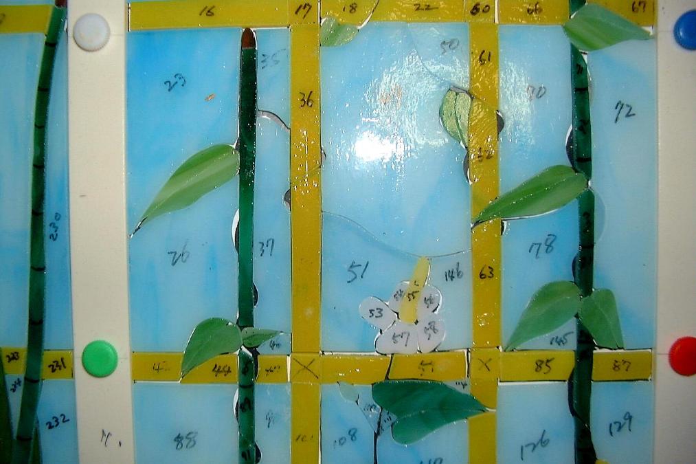 実際の作成ではこの原図(カラーではない)のガラスピースをもとにしましたが、「トクサ」の大部分は1本トクサを1本のピースとしてガラスをカットし、節目をコパーテープを巻くだけで処理しました。