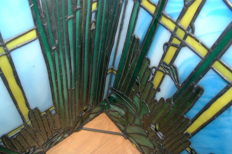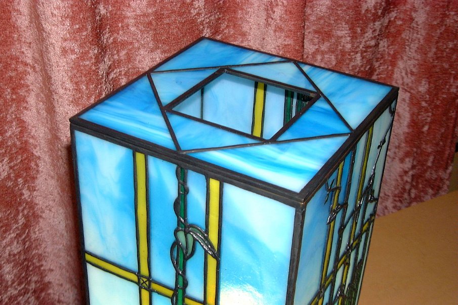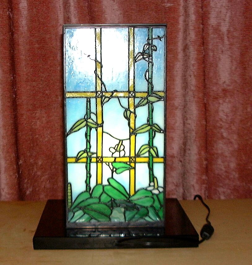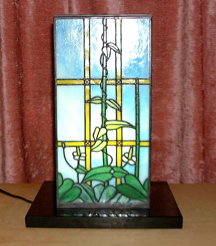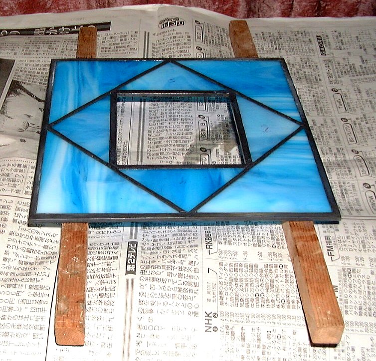 第2作は、全体の構成、デザイン、材料・素材、作成方法など、第1作とほとんど同じです。しかし、デザイン(ヤマノイモのツル、小さな葉など)を少し変えたところがありますし、材料のガラスに色々違いがあります。