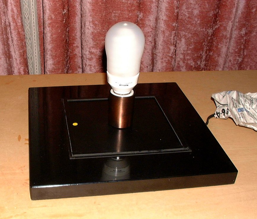 木製ウレタン塗装のベース上面にはアンドン本体の底面と同じ広さの保護用1mm厚ゴム板、およびストッパー(アンドン上面カバーと同じ)を、底面全体には保護用布を付けました。