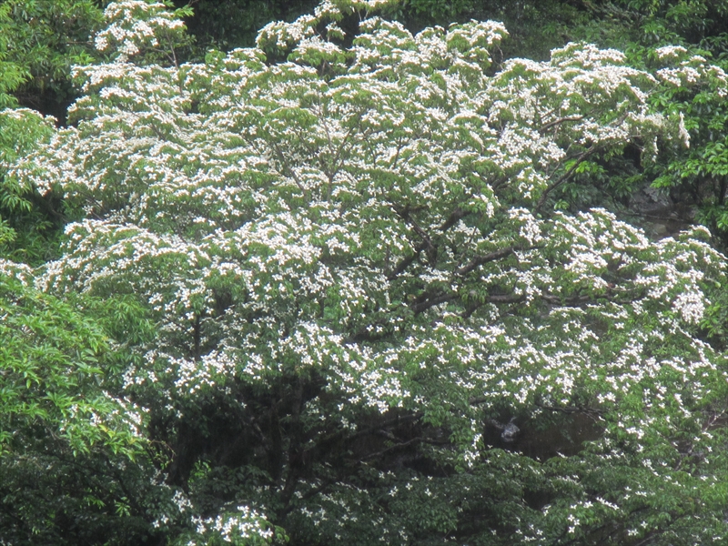 以下、いずれも屋久島山行(2016年6月20日〜24日) 左:小花之江河のヤクシマシャクナゲ(6月22日)、右:白谷雲水峡のヤマボウシ(6月23日)