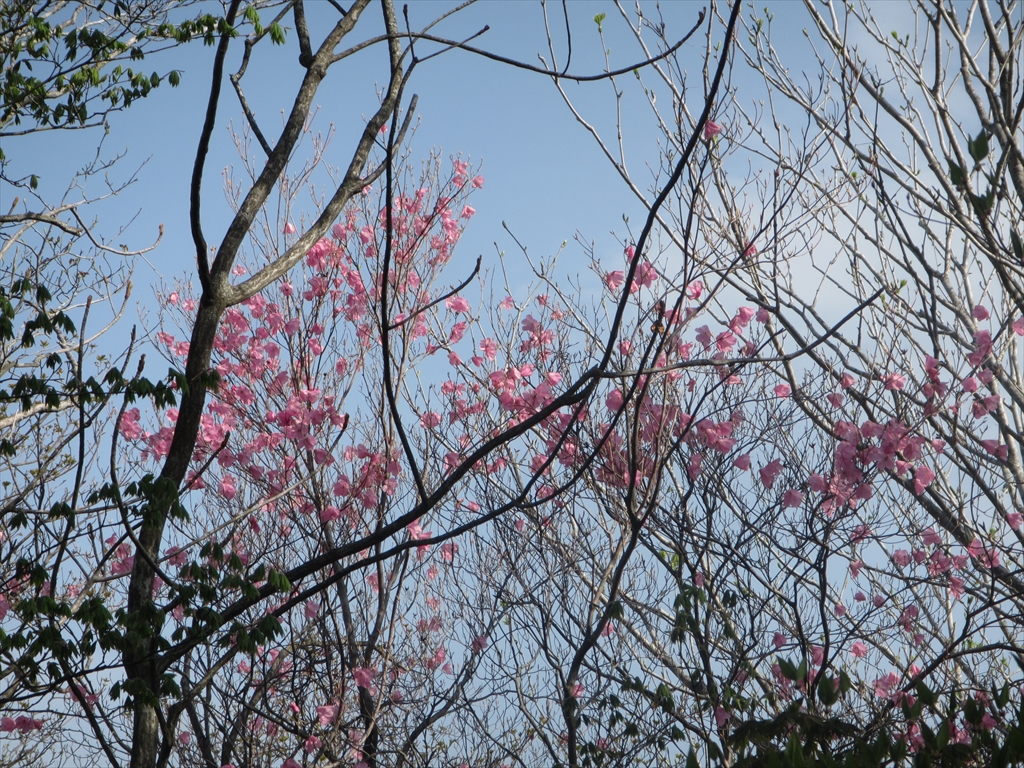 左:二上山女岳のミツバツツジ、右:同 アケボノツツジ