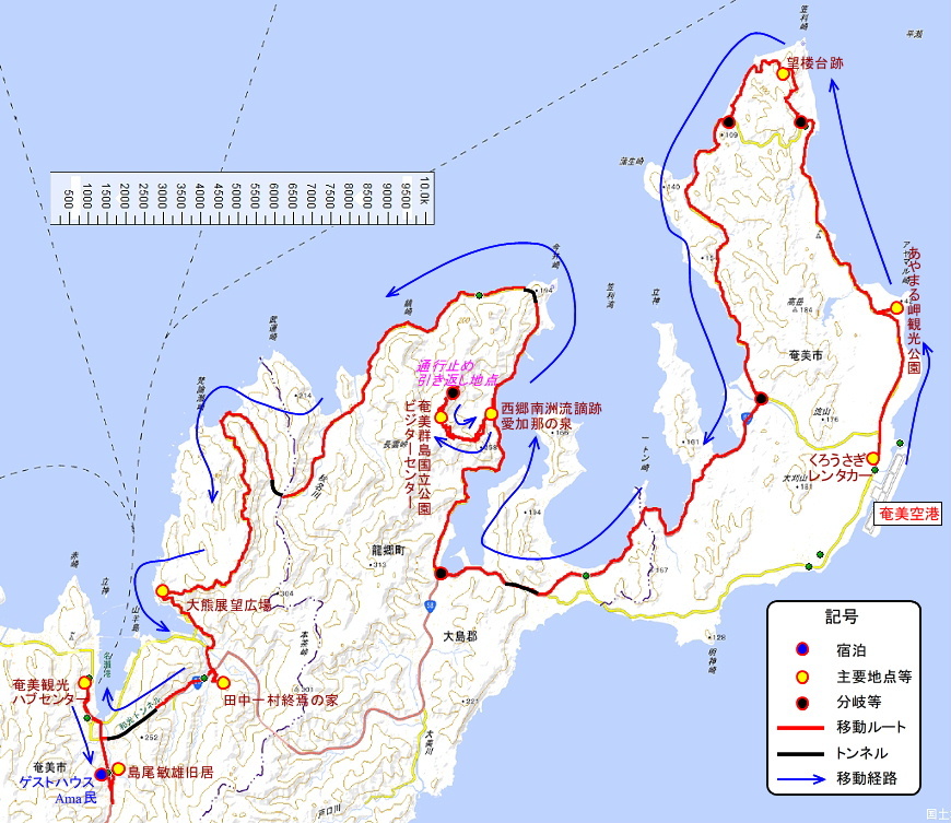 [行程] 西郷南洲流謫跡・愛加那の泉 12:00⇒[10分]⇒12:10 奄美群島国立公園ビジターセンター、引き返し地点(15分)12:25⇒[40分]⇒13:05 大熊展望広場(5分)13:10⇒[30分]⇒13:20 田中一村終焉の家(20分)
