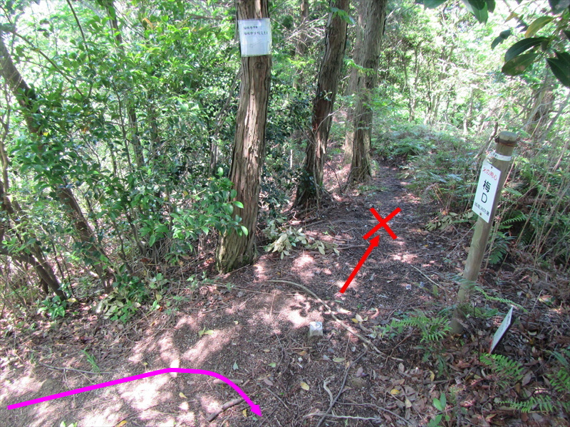 20160512_aburayama_041.jpg この分岐は右へ登る(左へ下る) 北のピークへの道へ進まないこと |