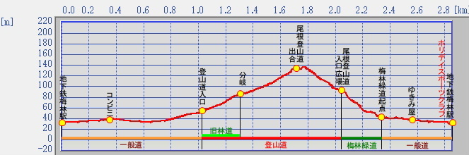 注:2022年11月9日(水) 油山山地北部散策のデータ。 カシミール3D GDBファイル:20221109_油山山地北部散策.gdb 【トラックグラフ】距離・標高 注:2022年11月9日(水) 油山山地北部散策のグラフを再利用。地図と同じく、ラーメン「ゆきみ屋」と「ホリデイスポーツクラブ」を付け加えた。