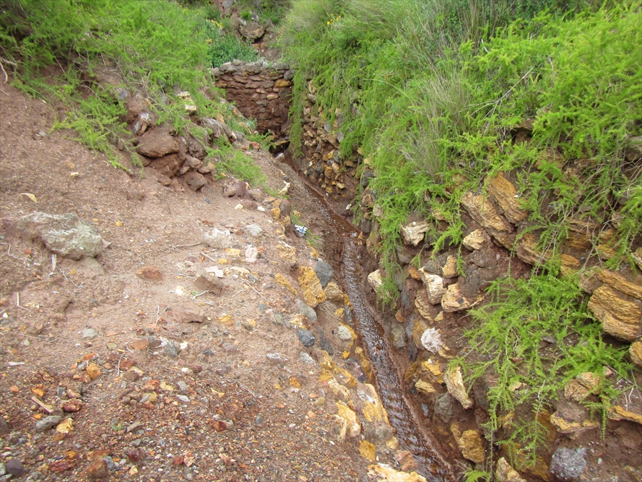 下の平地 発掘された遺跡の石の列 しかるべく組み合わされるのだろうか |