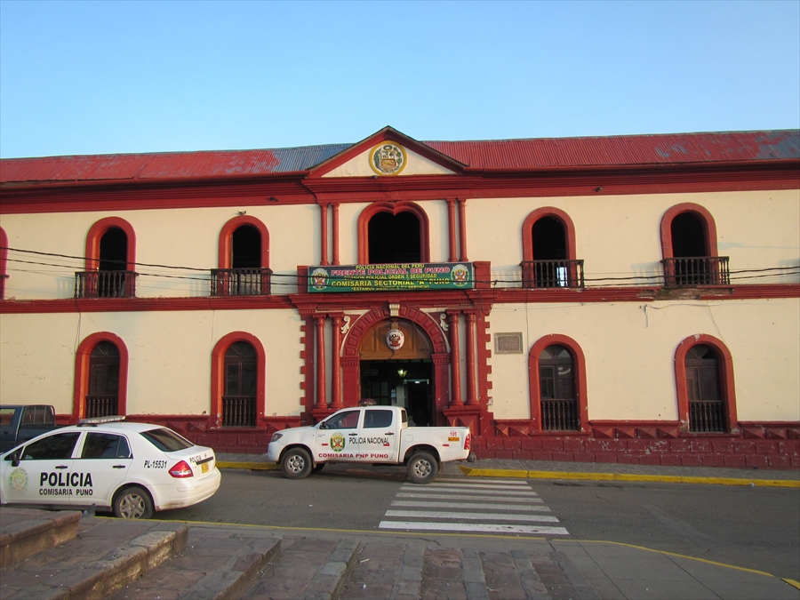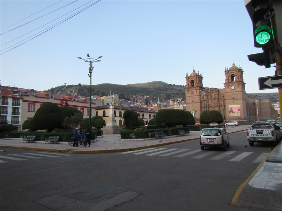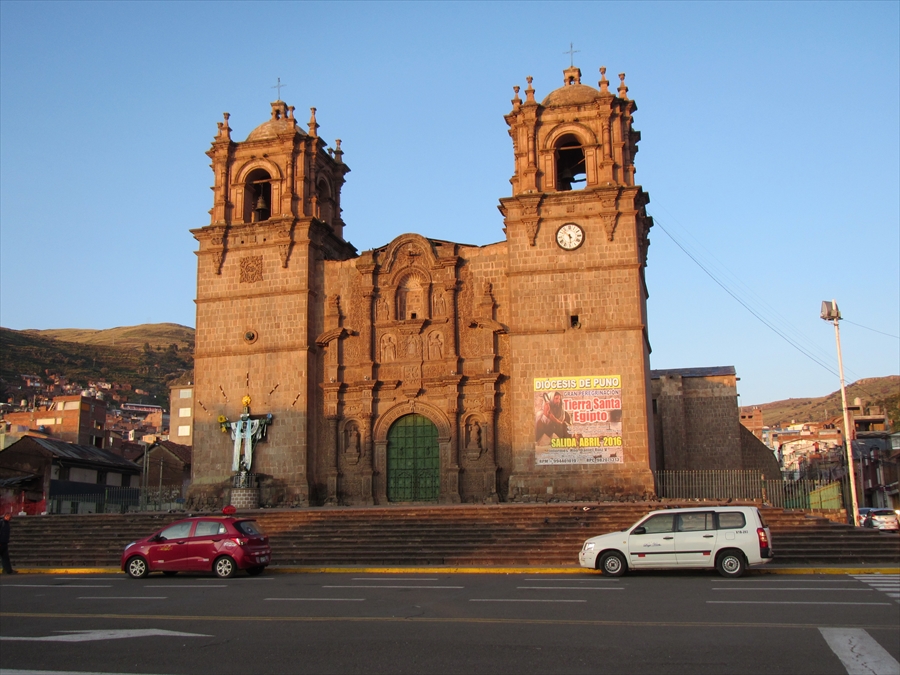 朝日に映えるプーノ大聖堂正面 |