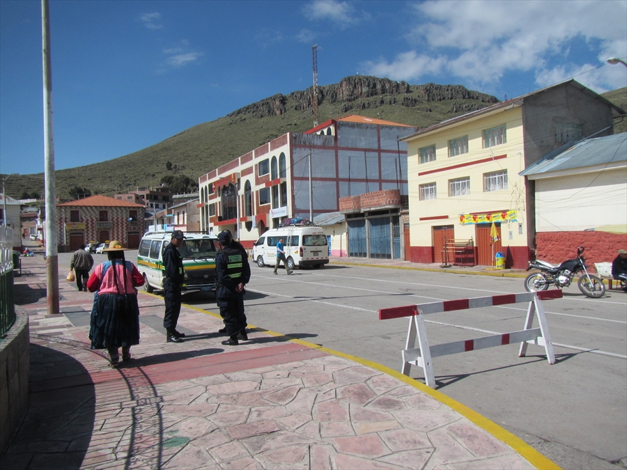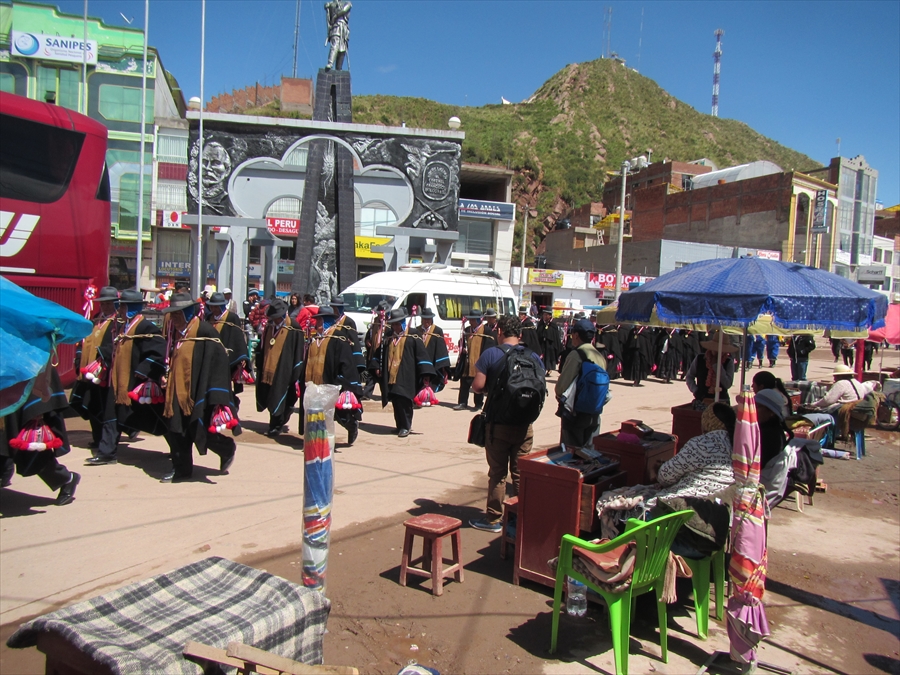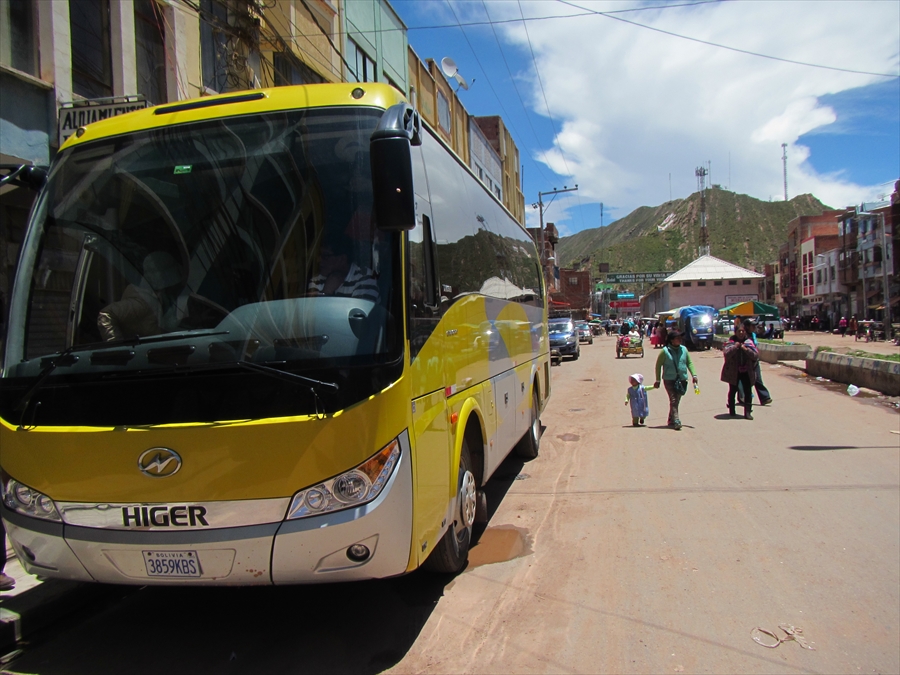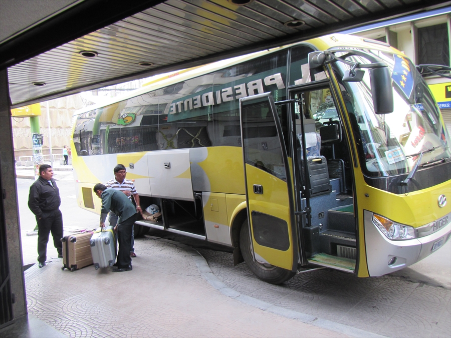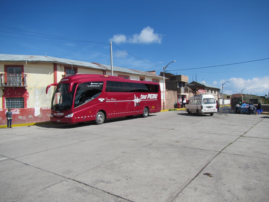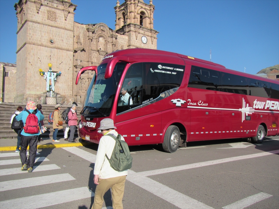 バスはアルマス広場に駐車 これに乗り込み ボリビア・ラパスへ向かう |