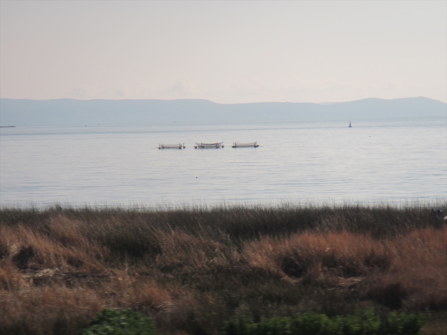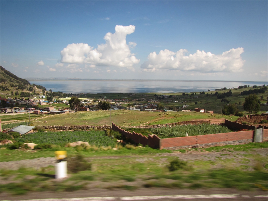 天気は上々 チチカカ湖と湖畔の村落 絵になる景色である |