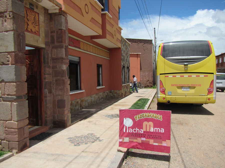 ティワナクのレストラン到着 "Pacha Mama"、遺跡のすぐ近く バスで5分くらい |