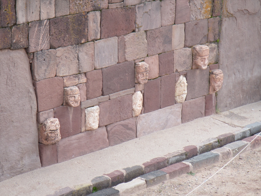 奇妙な壁面 人頭像がはめ込まれている しかし、この復元は不確かと思われる |