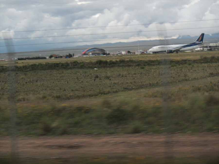 ここには国際空港がある 標高4,200m、世界一高所の飛行場 大気が薄いため、滑走路が長い |