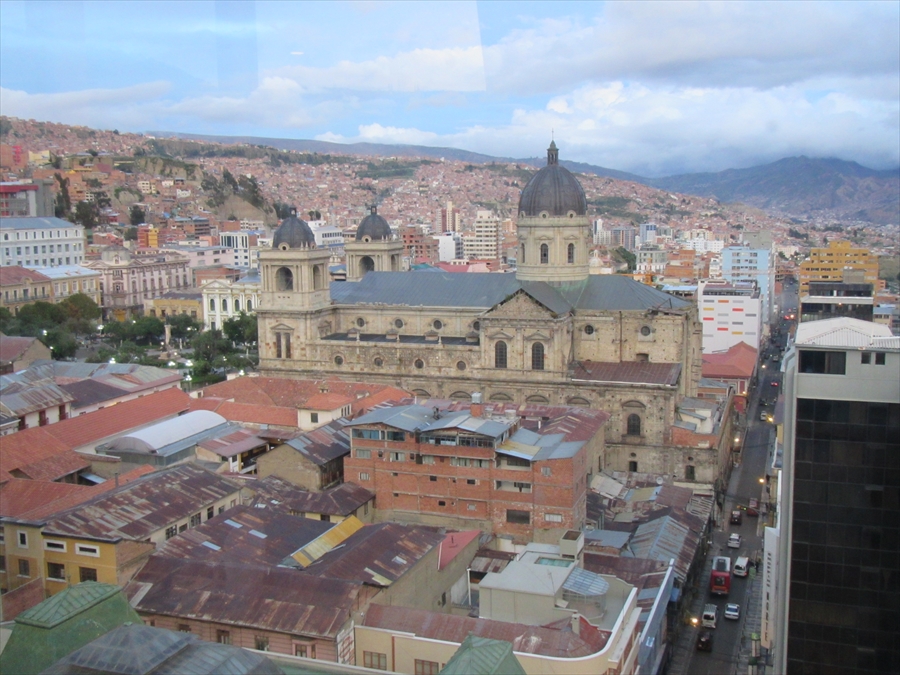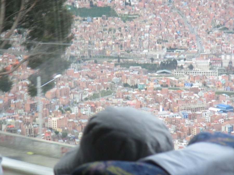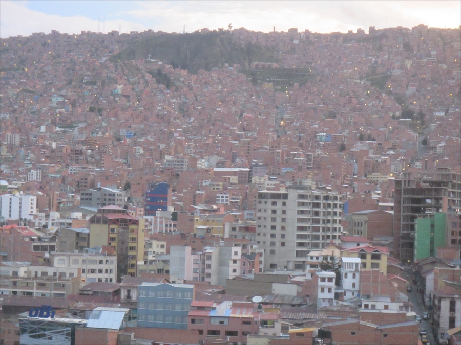 ラ・パスはすり鉢状の盆地の底 降りると周囲は山肌に囲まれていた 坂の上の家々は移動が大変だ |