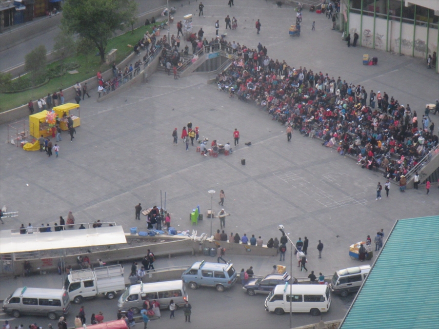 ここは9階 真下に町の中心広場 何かパフォーマンスのようだ |