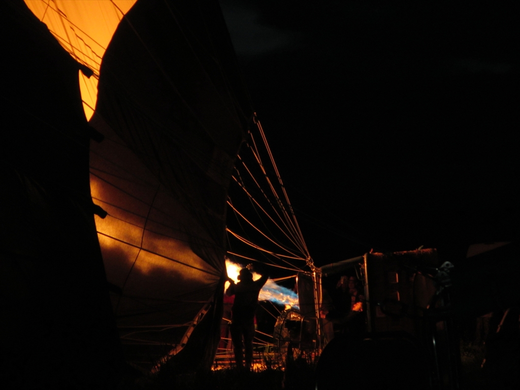 20250518_ankara_001.jpg バルーン体験、以下No.021まで 気球に熱気と空気を入れ膨らます 早朝5時頃、辺りは未だ暗い |