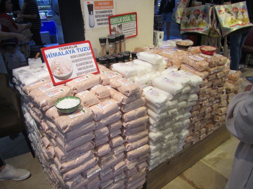 20250518_ankara_032.jpg 塩売り場、両端はヒマラヤ岩塩 真ん中がこの塩湖の塩、一つお土産に |