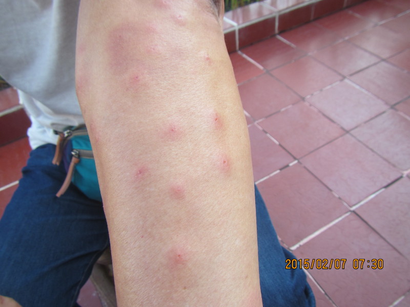 guiana_0207_0005.jpg 突然ですが「プリプリの被害」、前日下流の中州でやられたとのこと(男性です) 痛ましいのですが、公開を了解の上写真を撮らせていただきました 油断をすると全身こうなります |