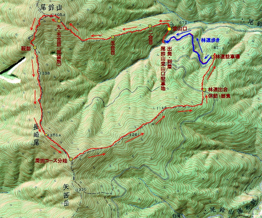IMG_0044.jpg 長崎尾から下って、分岐 直進は白滝コース 左の周回コースへ進む |
