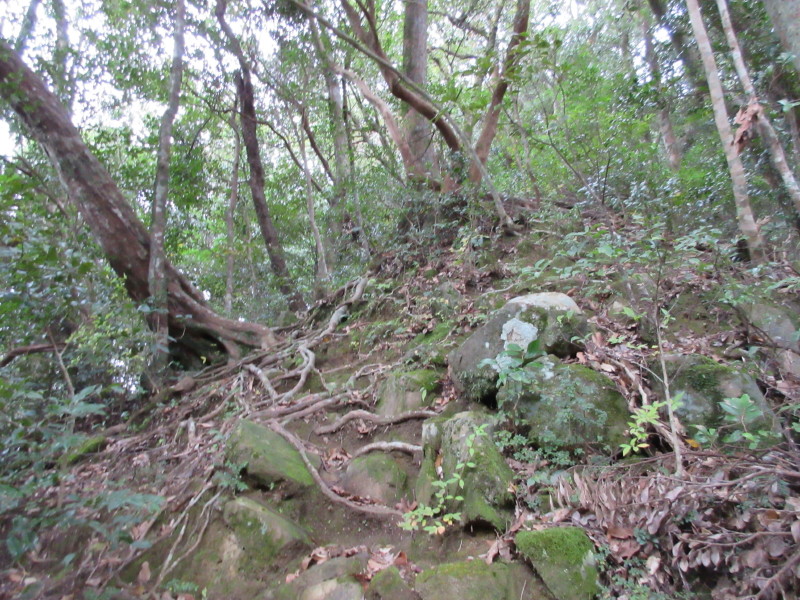 141128_hanakiri_kudari_0005.jpg 振り返ると急坂である 岩と木の根の道できびしい |