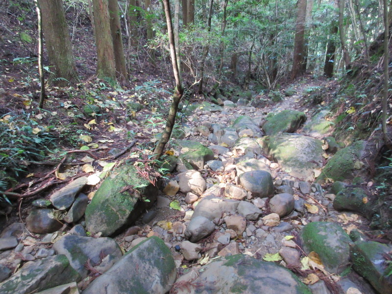 141128_hanakiri_kudari_0006.jpg 滝コース分岐を左折 自然林の急坂を下る |