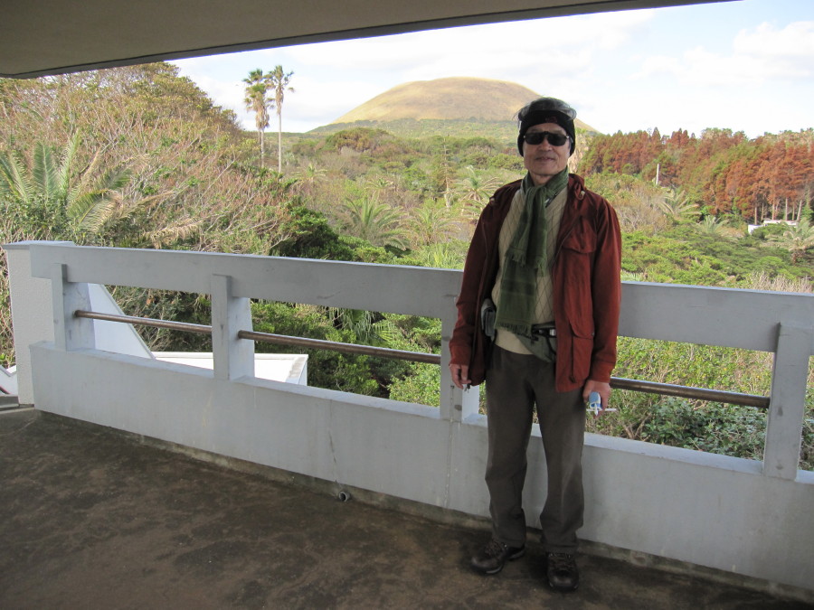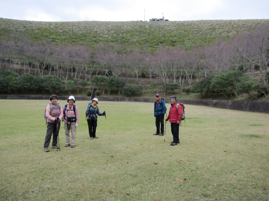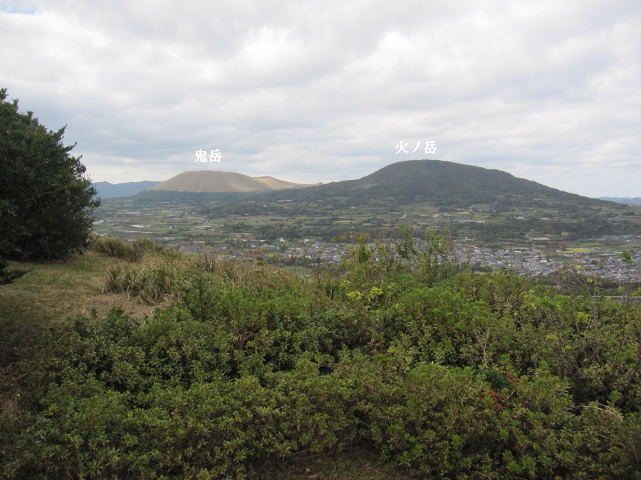 火ノ岳登山の林道駐車地から南東へ20分あまり車で走り、箕岳園地駐車場に着いた。 ここからこの日最後、第3座目の登山スタート。箕岳園地入口が登山口である。旧火口底は一面芝生で真っ平ら、周囲を桜並木に取り囲まれている。春の桜の季節はさぞや、と思われる。 その端から火口壁稜線の舗装遊歩道を山頂まで緩やかに登る。半周してすぐ山頂に到着、展望台がある。 南は東シナ海が広がり、北に目を転じると昼前に登った鬼岳、火ノ岳の対照的な二つの山の姿が見える。 下りは未舗装登山道、やや背の高いススキの中、登りと同じく穏やかに降りて行く。何とものどかな、いい気分である。 登山道の終わり、ツワブキの黄色のお花畑が今日の登山の締めくくりであった。 |