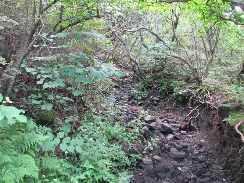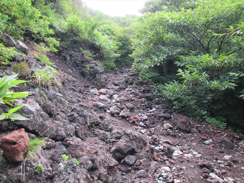 20160805_bogatsuru057.jpg 急坂を降りきる 道に黒っぽい石が混じるようになった |