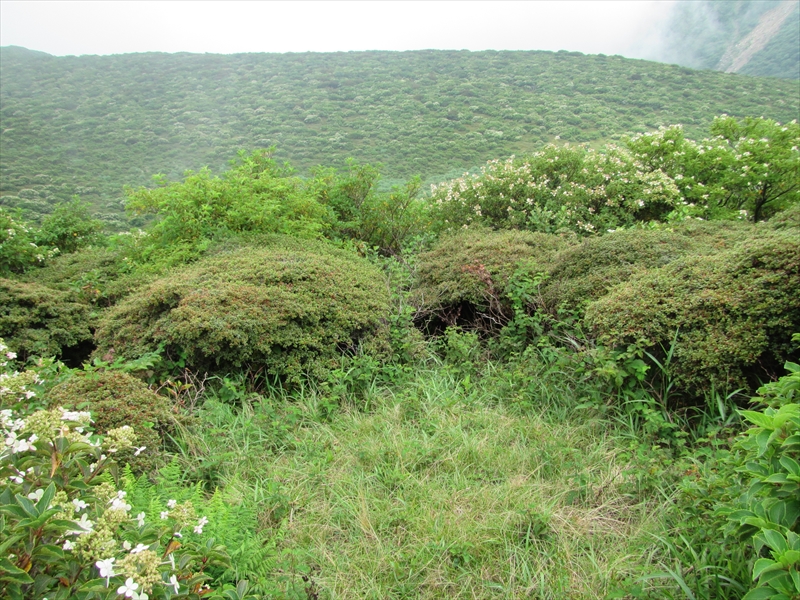 20160805_bogatsuru035.jpg 段原を通過、北大船山へ登る 灌木や草が生い茂る |