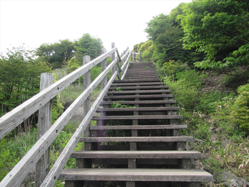 20170605_098.jpg 肩の下の階段から 牧ノ戸峠がはっきり見える |