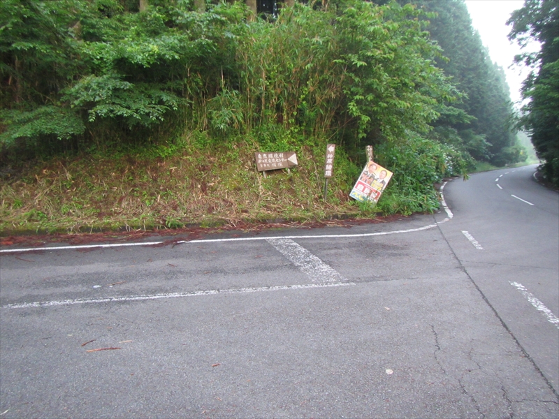 駐車地から林道を少し上るとY字に分岐 右はメンノツラ登山口へ その間の作業道入口が大障子岩登山口 |