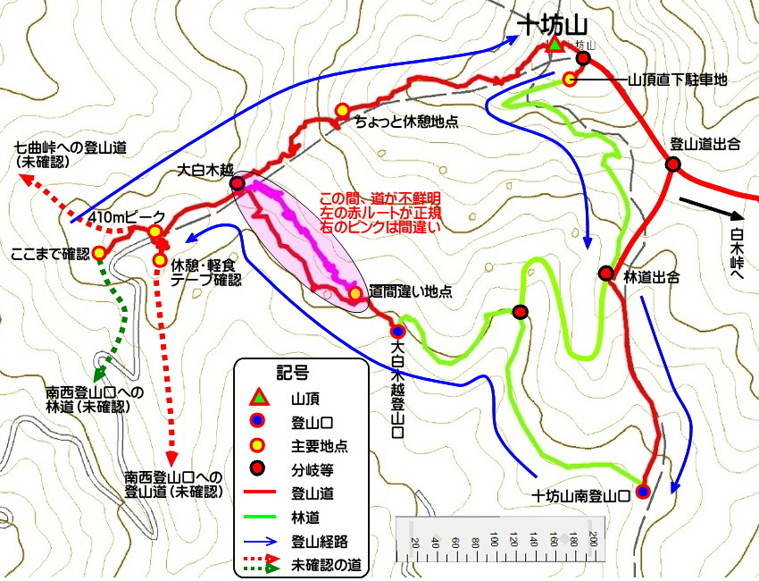 20180106_tonboyama_012.jpg 大白木越、道間違いに気づいた 正規の道を間違い地点に引き返し テープを剥がしながら、ここに戻った |