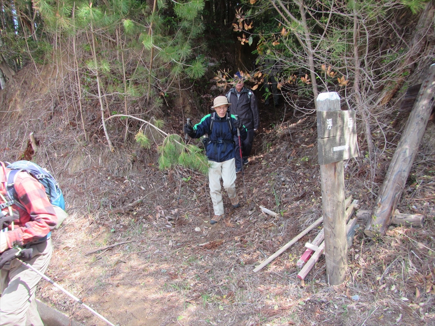 20180408_ukidake_nijoudake_012.jpg 急坂を下り 登山道分岐に到着、小休憩 |