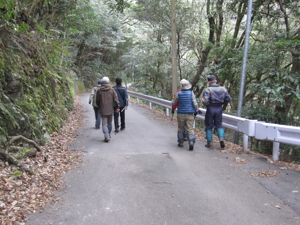 - 「油山会」山行、参加者 7名。会員K氏提供の車、K氏運転で移動した。Kさん、ありがとうございました。
