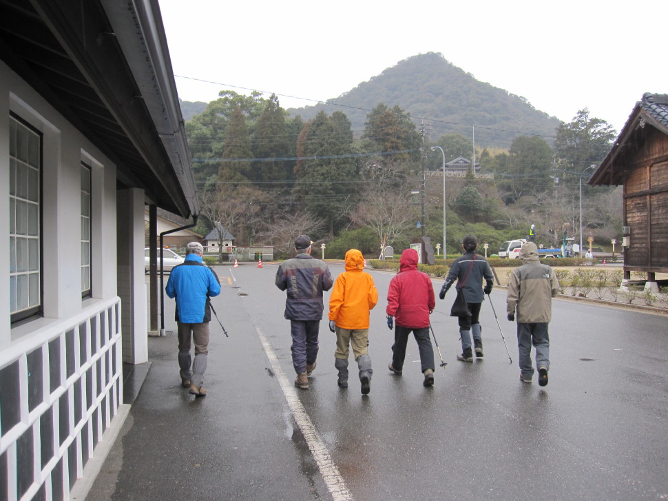 22002.jpg 小雨の中出発 リュックなし 正面は御船山北峰(?) |